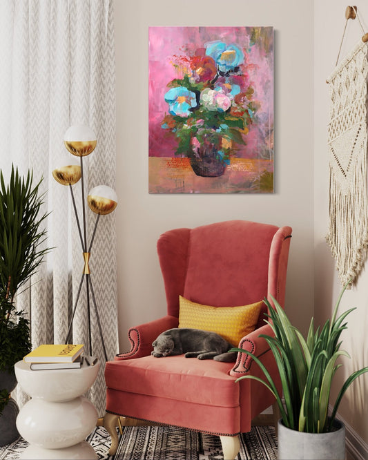 I hadn't painted in a while and I just want to let my brain free without restrictions and I wanted to challenge myself a bit and at the same time see what came out. It turned out to be quite an interesting process, I noticed that I started on many at the same time and some motifs pushed forward before others. I was hoping it would be coherent somehow in the end 😉 but at the same time it's all me. I don't really know what I was expecting, but it didn't turn out the way I thought it would, which was very exciting. Was incredibly inspired to continue creating. For this exhibition I have been painting since summer 2022.