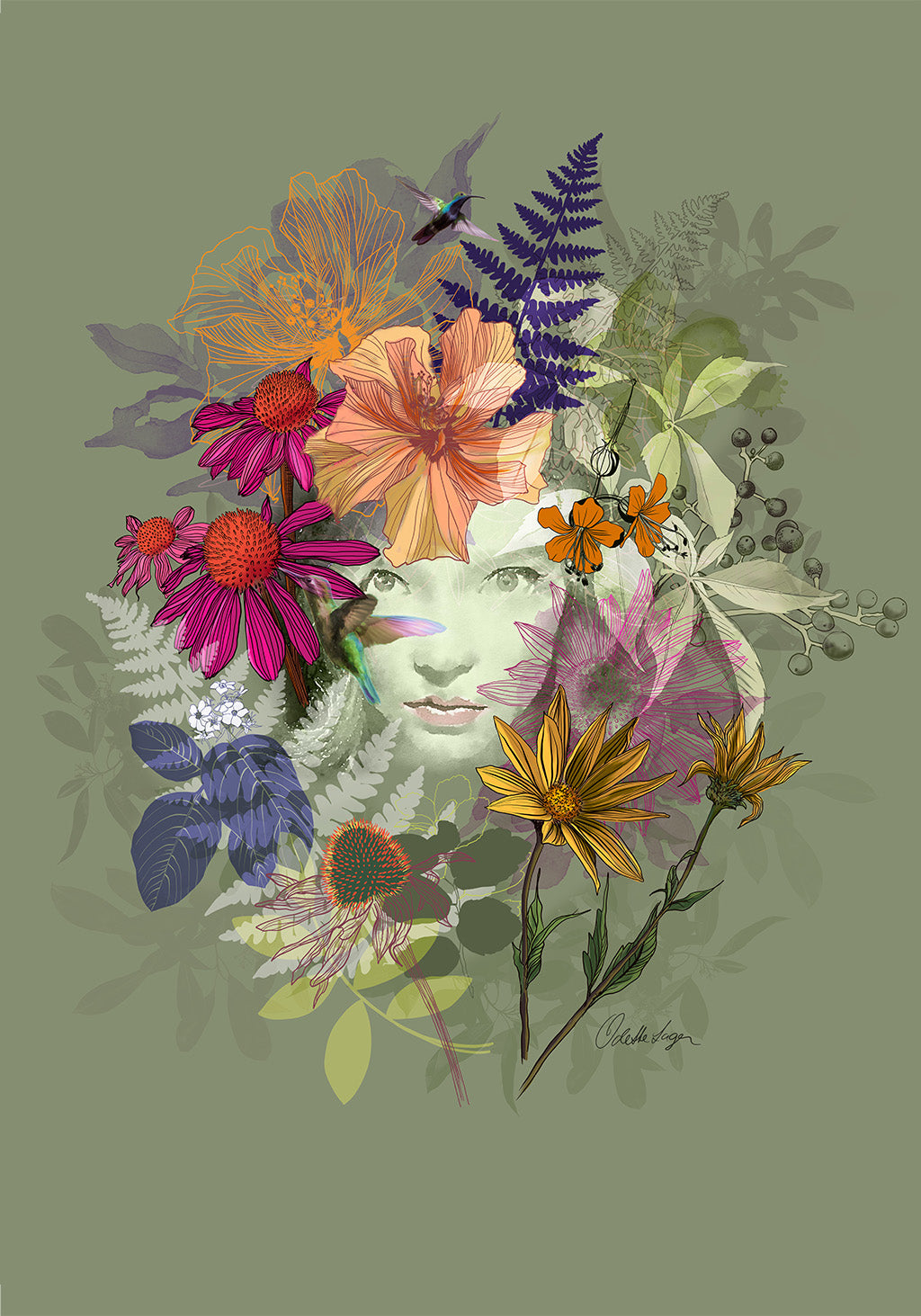 Det här är en så kallad Digigrafi. Slutbilden är en digital skapales. Men processen dit är en blandning av inskannat handritat, akvarell och ritat på Ipad och sedan ihopsatt som ett digitalt collage.