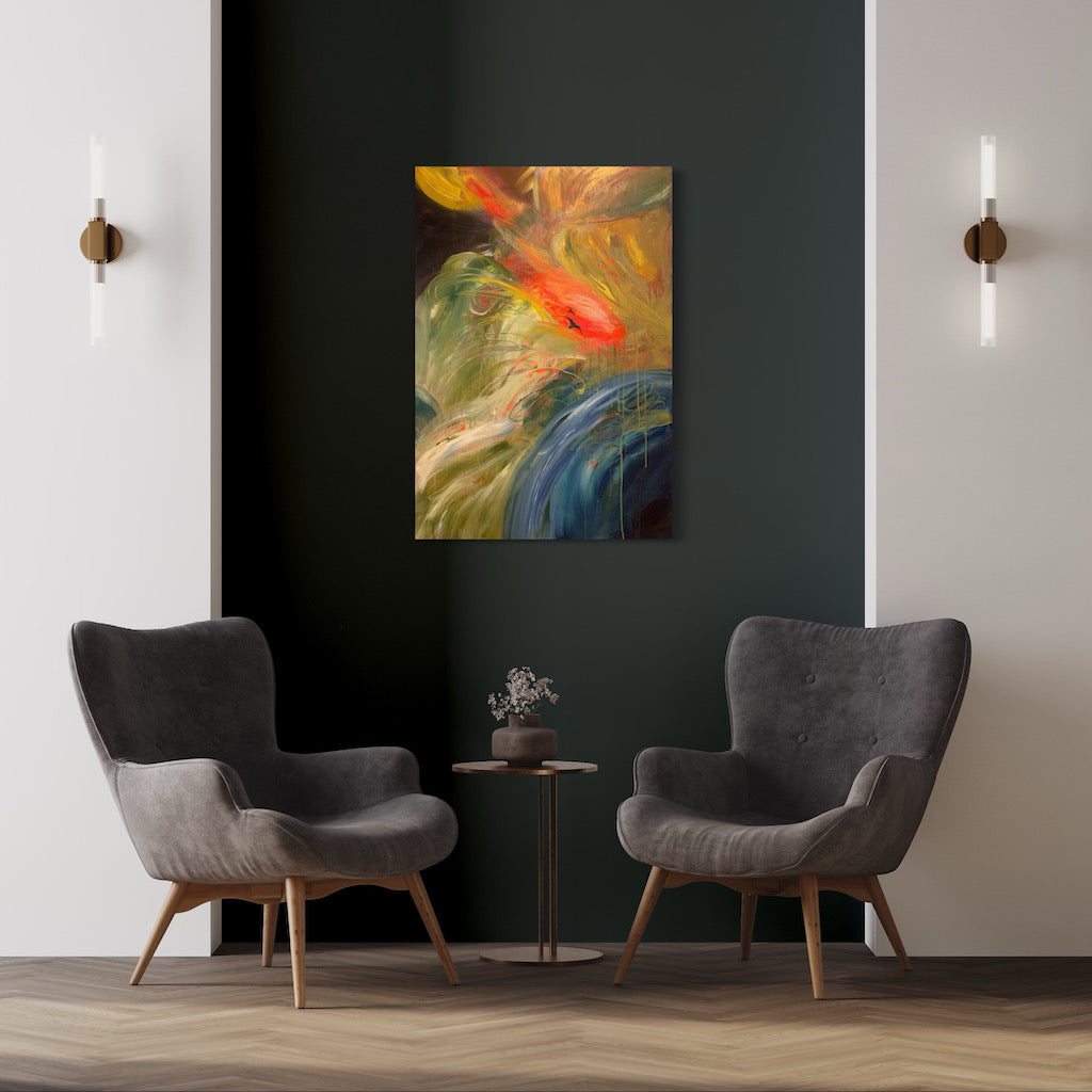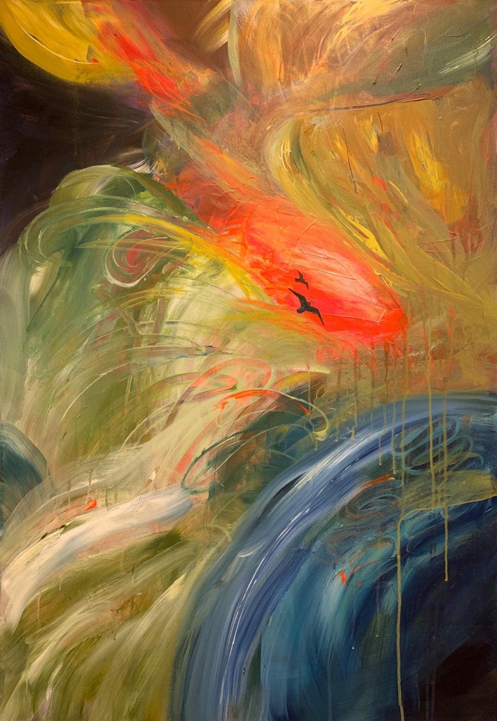 Min tolkning av denna målning; Ge dig hän och ta nästa steg. Öpppningen finns där. Flyg in i det spännande nya som finns där framme. Din hjärna talar om för dig att det är dags att ta nästa steg, du är redo. Det är inte ett svart hål och det är inte läskigt, din hjärna vet att du klara av det, du är mogen för det.